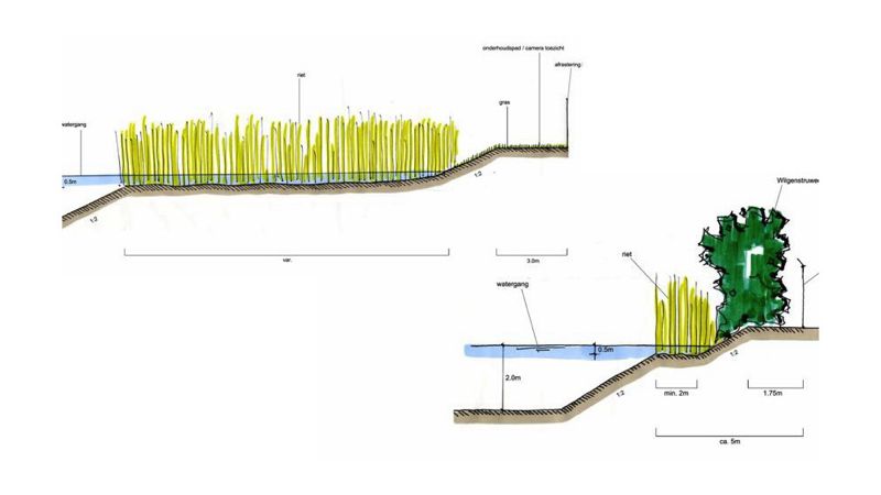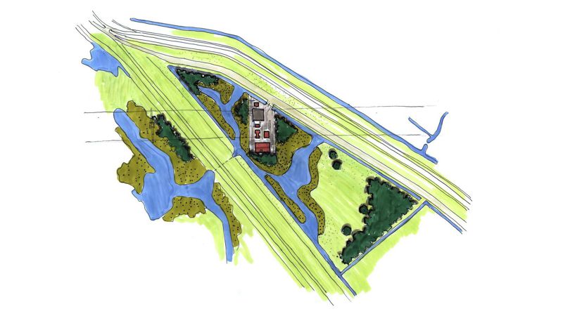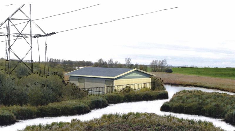 De zoektocht naar alternatieve energiebronnen vindt in Nederland zijn antwoord grotendeels in windenergie. Met de uitbreiding van een windmolenpark is er de behoefte ontstaan voor de ontwikkeling van een nieuwe traforuimte van aanzienlijke omvang. De locatie: natuurgebied. We zijn gevraagd om een plan te maken voor de landschappelijke inpassing van het gebouw. Dit doen we door de ruimte om het gebouw in te richten als natuurgebied, met bufferplanting, water en rietkragen. Ook het ontwerp van het gebouw sluit goed aan op de sfeer die het gebied uitstraalt.
