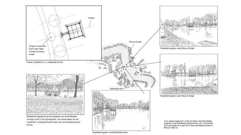 Al jaren leefde in Schoonhoven het idee om de historische muziektent te herbouwen. Rotaryclub Schoonhoven nam het initiatief om deze muziektent daadwerkelijk terug te laten keren. We werden gevraagd een studie te doen naar de locatie voor de nieuwe muziektent. Via een enquête vroegen we inwoners welke locatie in het Springpark de voorkeur had. Na goedkeuring van de Rijksdienst voor monumenten heeft de muziektent zijn plek gekregen. Wij verzorgden tevens de dataset voor de publicatie van de omgevingsvergunning op ruimtelijkeplannen.nl